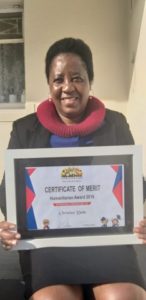 Hero of the Month Christine Dube-Basson has just been rewarded a certificate of merit for the humanitarian work she does